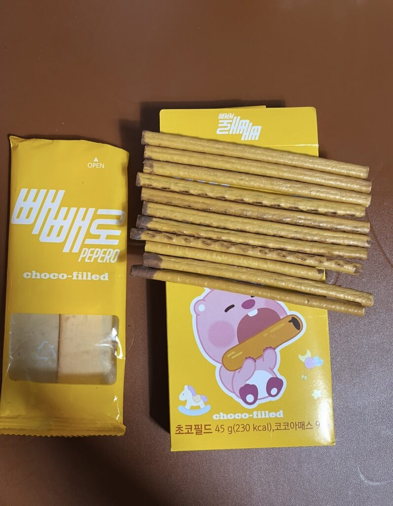 Pepero Choco Filled is one of Lotte’s signature snack series, featuring chocolate inside rather than on the outside.