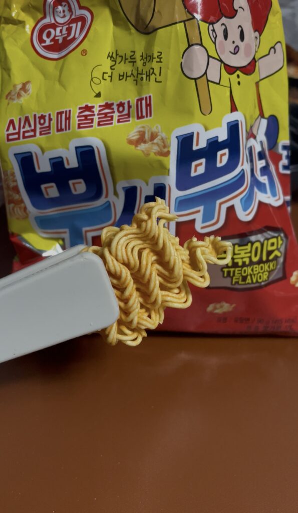 the biggest charm of ppushuppushu tteokbokki is its texture. once you bite into it, there’s a crisp crackle that fills your mouth, followed by a nutty flavor from the fried noodles. it’s lighter and thinner than instant ramen, so it’s easy to chew. this is what gives the snack its signature crunch.
